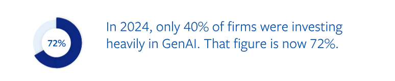 In other words, their survey and the results agreed with our own, that “AI is fundamentally reshaping the sector.”
